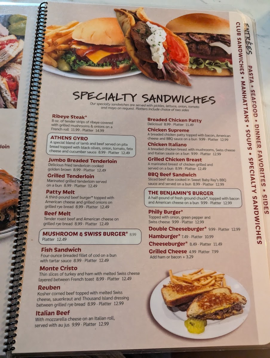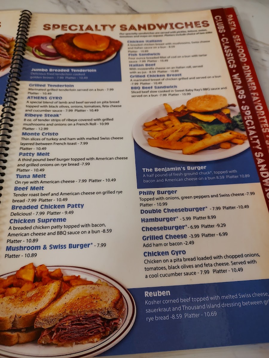 Benjamin's Family Dining offers a welcoming menu that blends classic family restaurant favorites with hearty breakfast options, making it a comfortable spot for any time of day. The menu features a range of simple, satisfying dishes—from flavorful burgers and refreshing sandwiches to generous portions of hand-breaded pork tenderloin and home-style pastas.